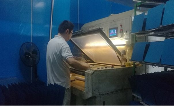 將金屬板材放入蝕刻流水線將顯影后露出的部分進行腐蝕,干膜保護的區域則沒有化學反應,這道工序是金屬蝕刻加工中最為重要的工序。